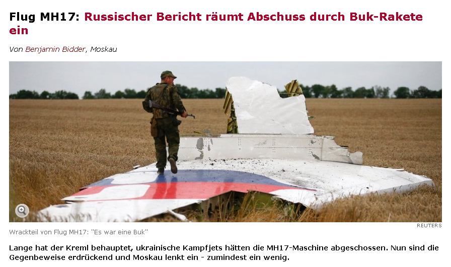 German weekly news magazine claims that in its coverage of the Malaysian plane crash in eastern Ukraine last year, RT "was certain that the plane was shot down by a Ukrainian jet."